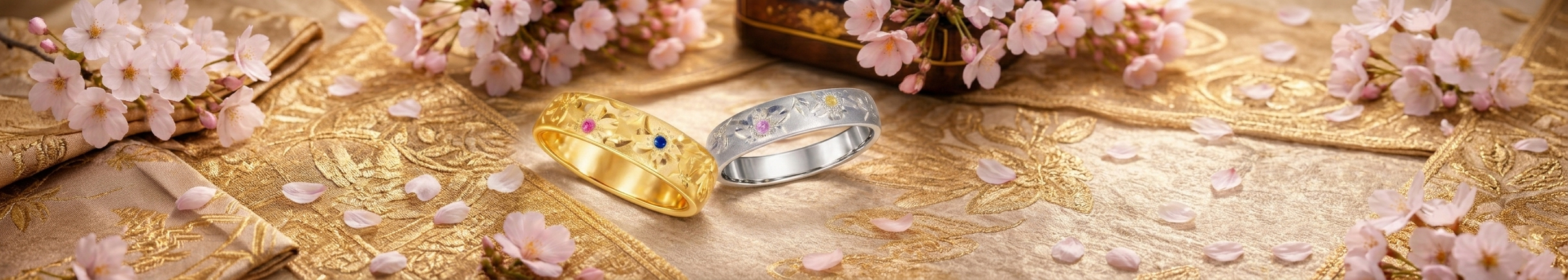同じ彫り模様でも、プラチナ、イエローゴールド、ピンクゴールドと、お好みの貴金属に合わせて制作が可能。地金の色によって、和彫りは全く異なる表情を見せてくれます。