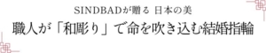 「人と同じ既製品ではなく、自分たちらしい個性を大切にしたい」 そんな想いを持つおふたりへ、SINDBADは日本の伝統技法「和彫り」をご提案します。