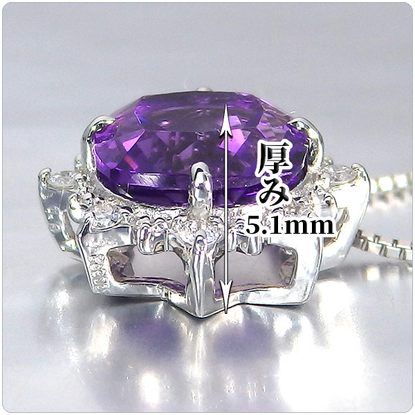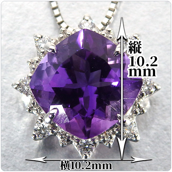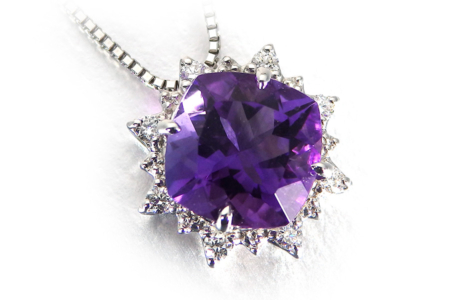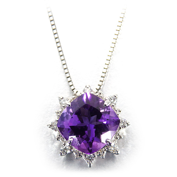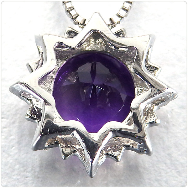 ブラジル産のアメジストではありません。アフリカ産のアメジストになります。原石が良くてさらにカットがいいので宝石としての魅力がアップされています。小粒の上質ダイヤモンドがアクセントになってより中石の良さを引き立てています