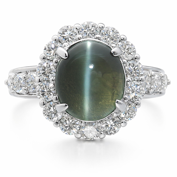 Pt リング キャッツアイ 2.293ct 中央宝石研究所鑑別書付