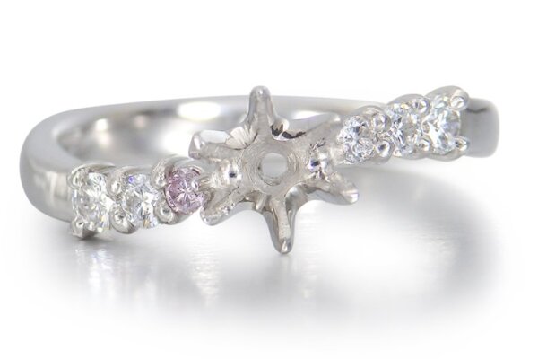 - 中石に当店のダイヤモンドなどの宝石からお選びいただき、お留めすることもできます。お見積もりなどご希望の場合はどうぞお問い合わせください。(当店でお求め頂いたダイヤモンドを留める場合、ダイヤモンドの鑑定書に、脇石のピンクダイヤモンドの色因が天然のものであることの証明がつきます。)