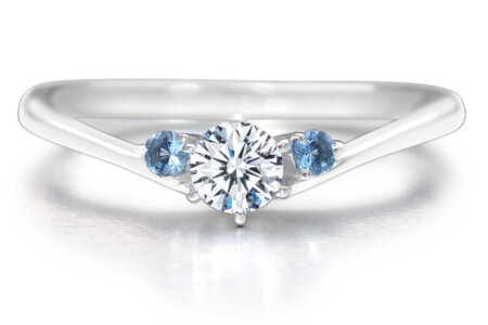 目の前に広がる大海原。その青い海を思わせるサンタマリアアクアマリン。これから始まる結婚生活のお守りとして、二人を見守ってくれるサンタマリアアクアマリン。中央のダイヤモンドが一層輝きます。
