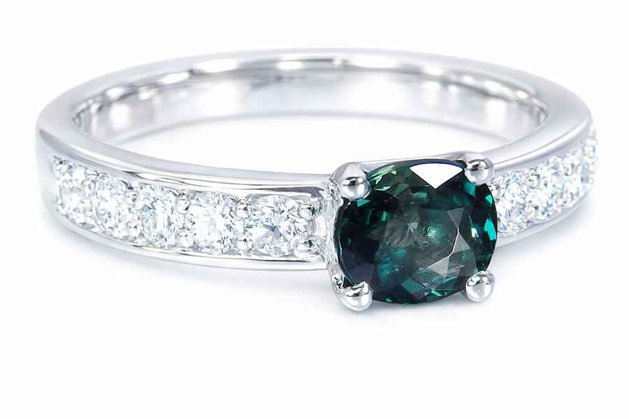 グランディディエライトは市場に出回って日の浅い宝石です。それ故、どういった色がより価値が高いかといった価値基準に関する資料がなく、多くの場合で恣意的なジャッジが行われているのが現状です。そのブルーグリーンの色合いからパライバトルマリンと比較して論じられることがありますが、少し無理があるように感じます。パライバにはパライバの特徴的な色、グランディディエライトにもやはりグランディディエライトにしかない独特の色合いがあるからです。私見ですが、魅力的なパライバは南国の海の色、最上のグランディディエライトは北国の海の色、と言いたいところですが北国の海の色ではなく、北国の深海に生息する海藻の色に近いと感じています。