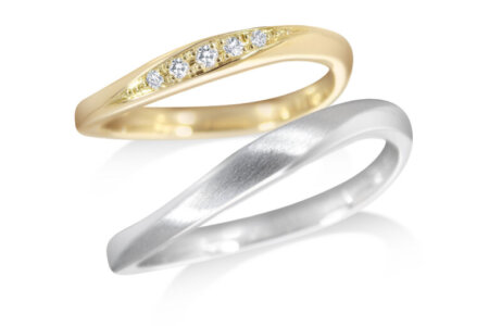 着け心地良く指にフィットする緩いウェーブラインは、これから訪れる安息の時間をイメージしてデザイン。寄せては返す静かな波の様に、いつまでも続くふたりの調和がテーマ。センターにダイヤモンドが5石。輝くダイヤモンドがシンプルなデザインを際立たせています。それぞれのお好みの素材でチョイス。艶消しのアレンジもヘアライン艶消しや、グラスビーズ艶消し、ダイヤモンドポイント艶消しもお選びいただけます。