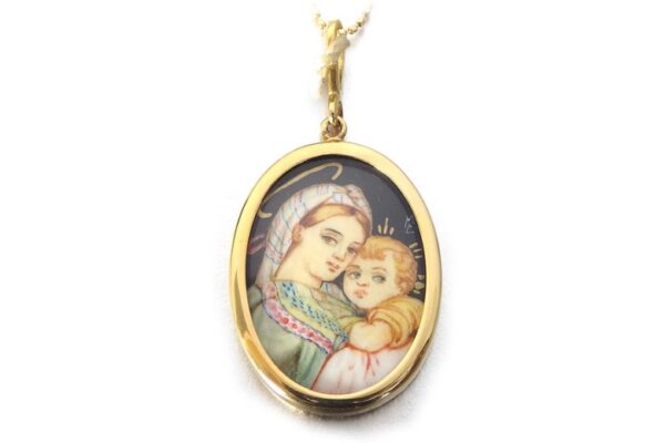 ラファエロの「小椅子の聖母」を思い起こさせる手書きのミニアチュールです。