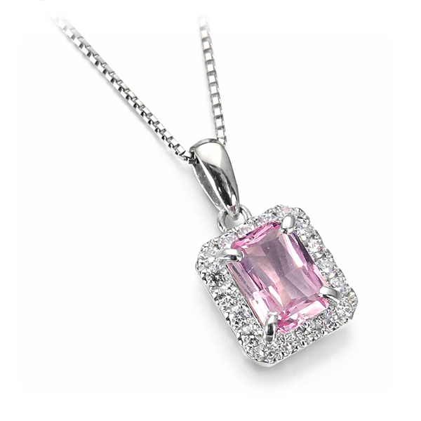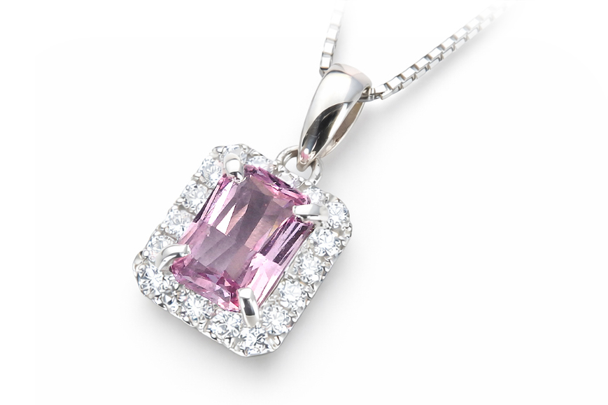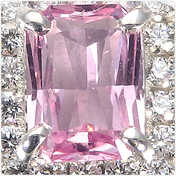 今回ご紹介する0.968カラットのパパラチヤは、ピンクと薄紫、そして角度を変えるたびに淡いオレンジが顔を覗かせる、非常に繊細な色彩を持っています。