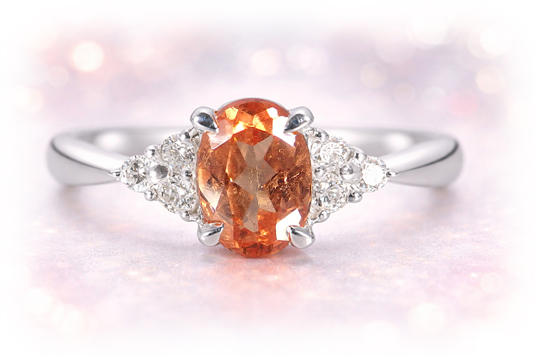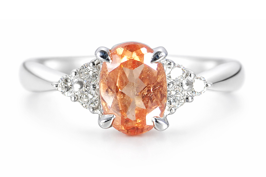 『マンダリン(中国ミカン)』の愛称で知られる橙色のガーネットです。ガーネットの和名は『柘榴石』、紫がかったロードライトガーネットは『グレープガーネット』と呼ばれていますが、ガーネットはとかく果物に例えられることが多いようです。