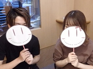 お二人でお手の形が違うので、それぞれにお好きな形をチョイス。ただし、お二方ともウェーブタイプの形状にして、さり気ないペア感をだすことにしました。妊娠9か月に入ったところ、ということで本日はちょっときつめでございましたが、何とかおはめいただき記念撮影。