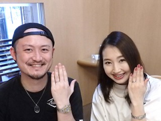 完成した指輪を着けたおふたりはとても幸せそうに微笑んでらっしゃいました。どうぞ末永くお幸せに!